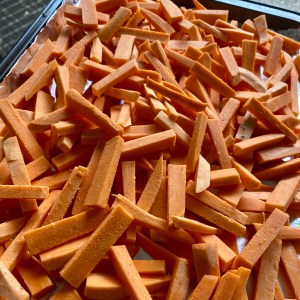 Clever Tip! While you are at it, cut up extra sweet potato sticks. Freeze them for using at a later time.