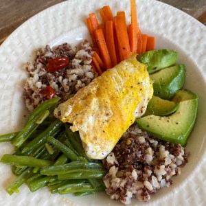 A feast for the eyes and the taste buds. That’s probably the best way we can describe this bowl. Asian-inspired, it has the goodness of quinoa, brown rice, green beans, carrots, avocado and egg. Use sesame chilli oil as per your taste, dialing the spiciness up or down.